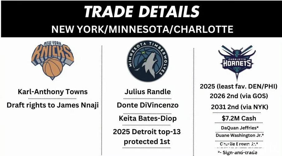 在今夏略显平静的自由球员市场中,一笔围绕纽约尼克斯和明尼苏达森林狼的潜在大交易忽然被曝出,而夏洛特黄蜂作为第3方球队加入谈判的消息,让原本简单的双边运作瞬间变得耐人寻味。不同于以往只为补强当下战力的常